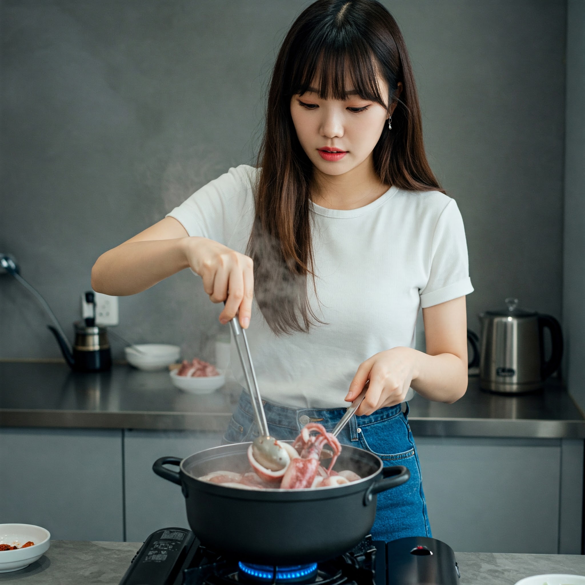 - 끓는 물에 삶기: 물이 끓기 시작하면 오징어를 넣고 1~2분 정도 삶습니다.