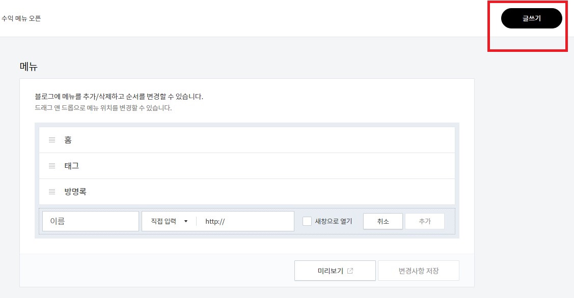 티스토리 글쓰기 버튼 만들기 티스토리 글쓰기 메뉴 만들기