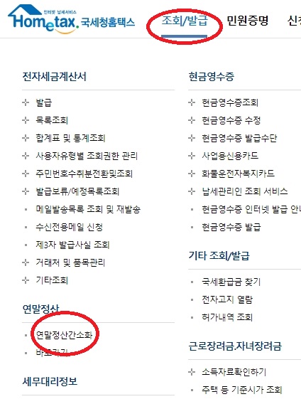 홈텍스에서 연말정산 간소화서비스 이용하기